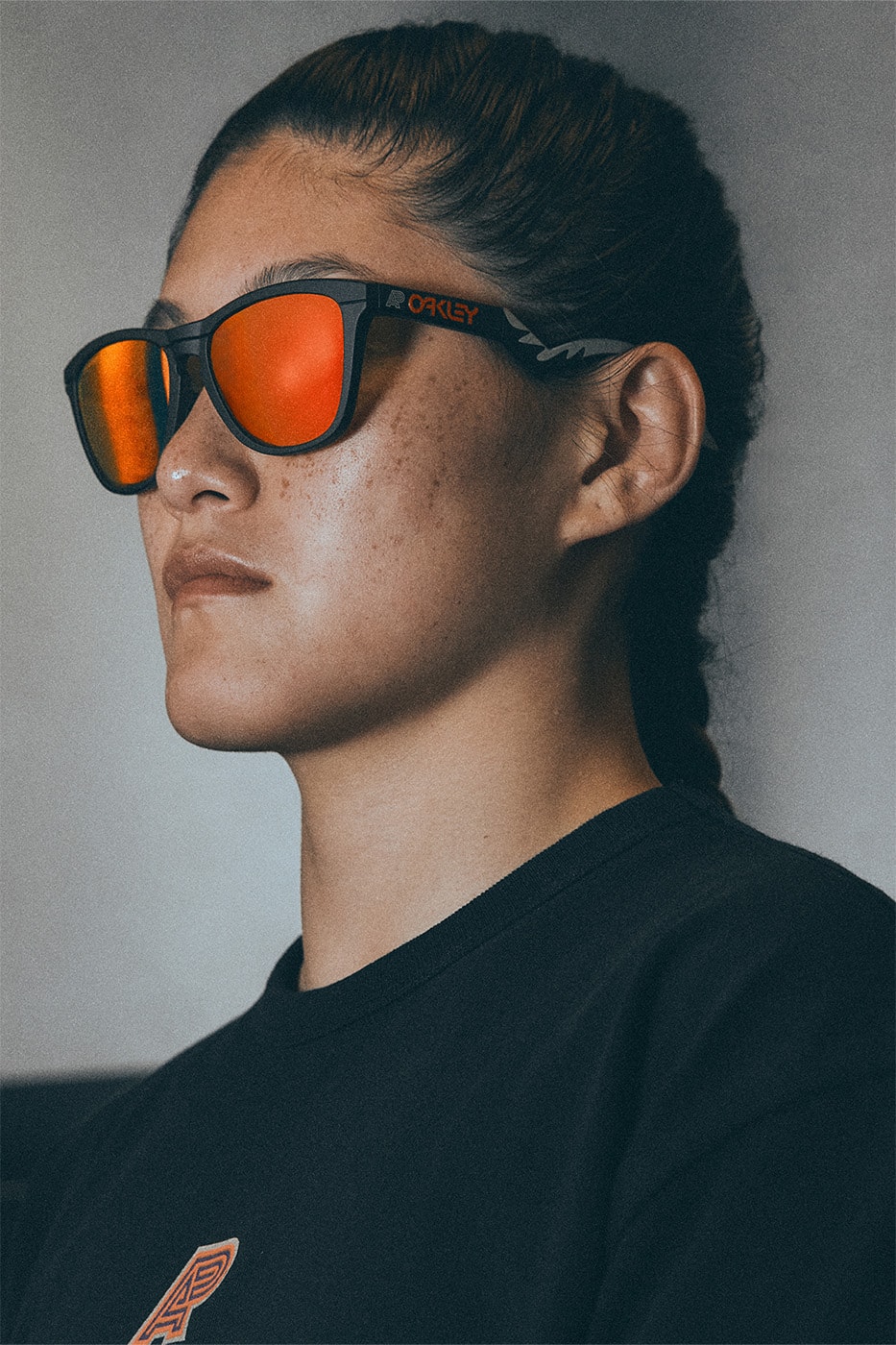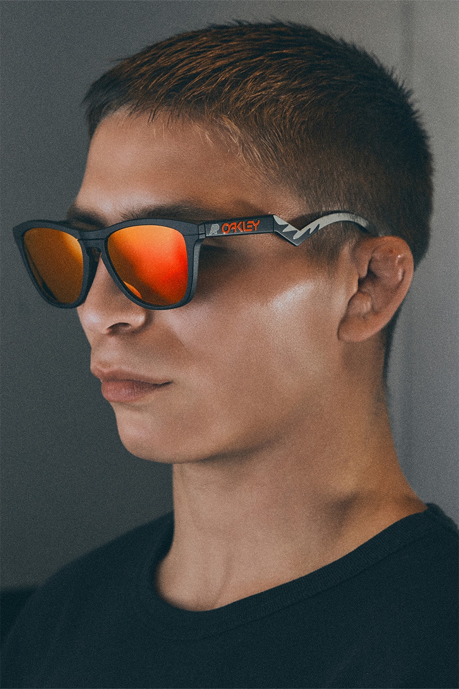 Жодна колаборація з Oakley не обходиться без окулярів. І цього разу Frogskins™ Hybrid набули нового життя. Рамки обгорнуті фірмовим патерном Albino & Preto, а лінзи PRIZM Ruby не лише захищають очі, а й роблять погляд особливо виразним. Це окуляри, які заявляють про себе голосно без слів.
