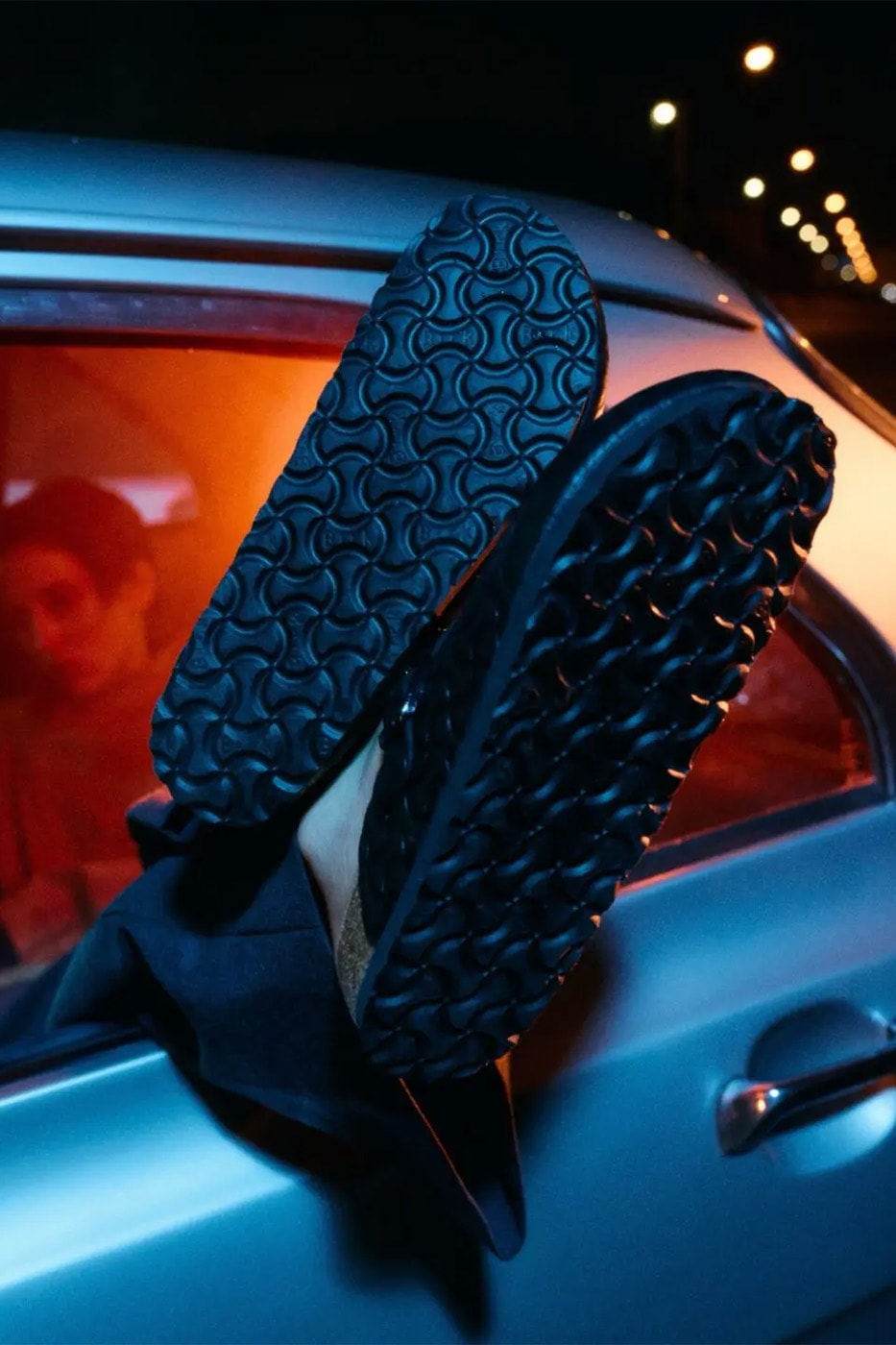 Але головне тут – не лише матеріал. Верх пари повністю покритий фірмовим Bon Pattern: глибоким тисненням, натхненним малюнком підошви Birkenstock. За рахунок цього взуття виглядає не просто мінімалістично, а по-справжньому характерно з фактурою, об'ємом і правильною часткою агресії.