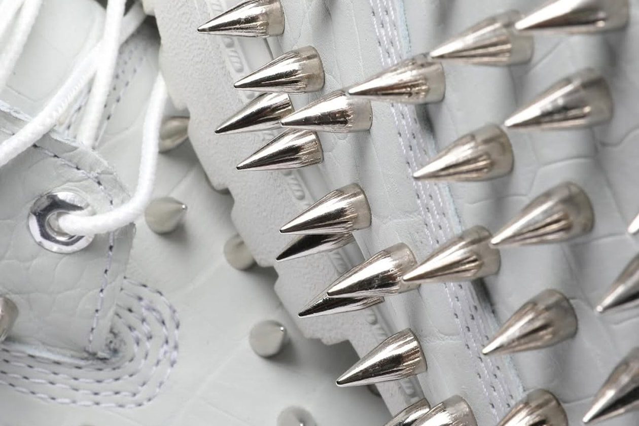 Bladee, вірний своїй естетиці "скандинавського ангела в депресії", вибрав повністю білу пару. Біла шкіра, срібні шипи по всій поверхні — ці Тімби виглядають так, ніби ними можна пробити не лише асфальт, а й пафос будь-якого модника на фестивалі. У мережі вже сперечаються, що написано на комірі: Shield або Drain. Але, чесно, коли твої черевики виглядають як сніговий шипований танк, текст — це останнє, що когось хвилює.