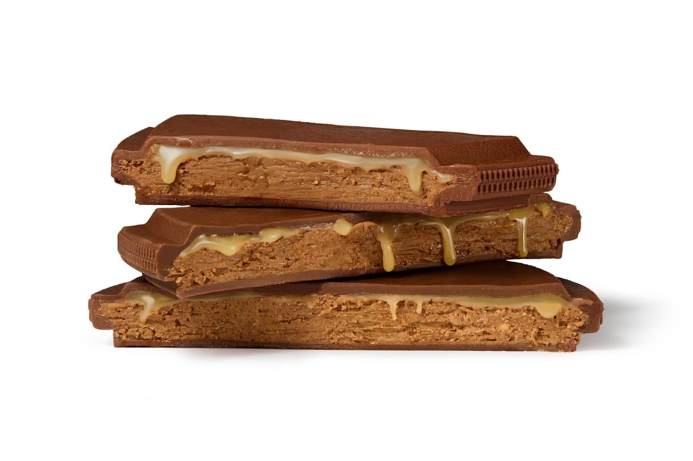 Зроблено сумку з двох оболонок темного шоколаду, усередині — фундучне пралине, обсмажені горіхи та цукати. Ручки та блискавка виліплені із забарвленого білого шоколаду, а в центрі захована плитка молочного шоколаду з начинкою із лимонної карамелі та праліне. Важить це задоволення 1050 грамів, так що перед нами не символічний сувенір, а серйозний гастрономічний об'єкт.