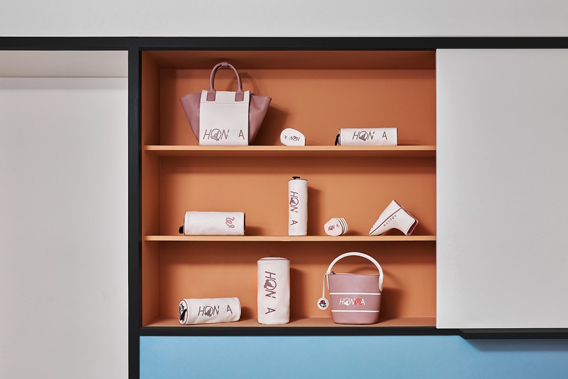 у колекції є сумки та аксесуари із синтетичної шкіри, прикрашені фірмовою символікою Malbon x HONMA.