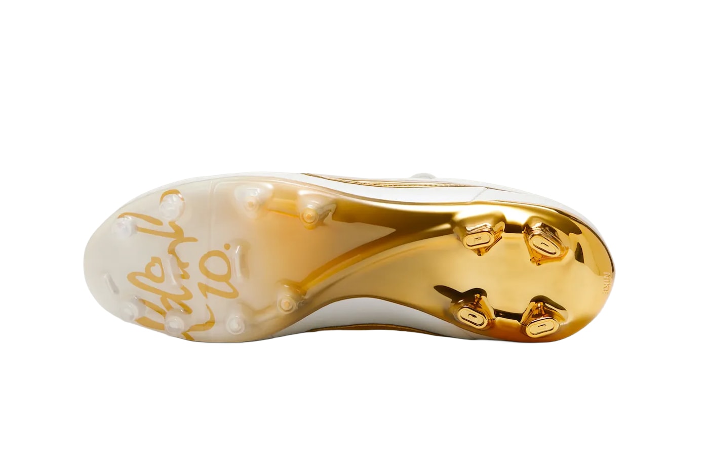 Ці кросівки більше, ніж взуття. Вони символізують епоху, коли бразильський чарівник із м'ячем заворожував мільйони по всьому світу. Біла шкіра, ідеальна для контролю м'яча, і золоті акценти на Swoosh та брендингу, що нагадують про те, як Роналдіньо отримав титул FIFA World Player of the Year, роблять бутсу справжнім витвором мистецтва.