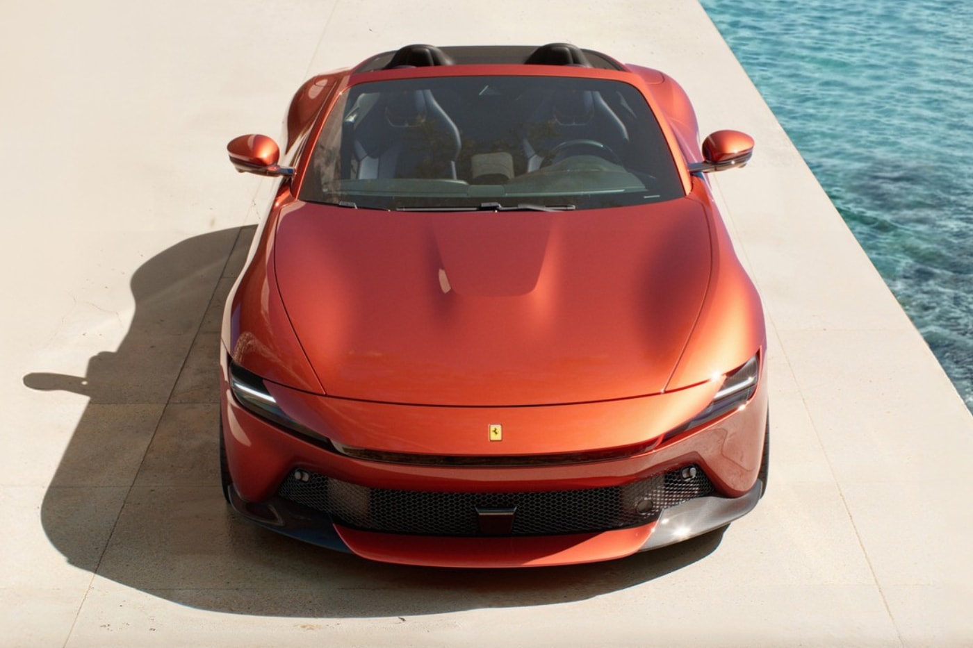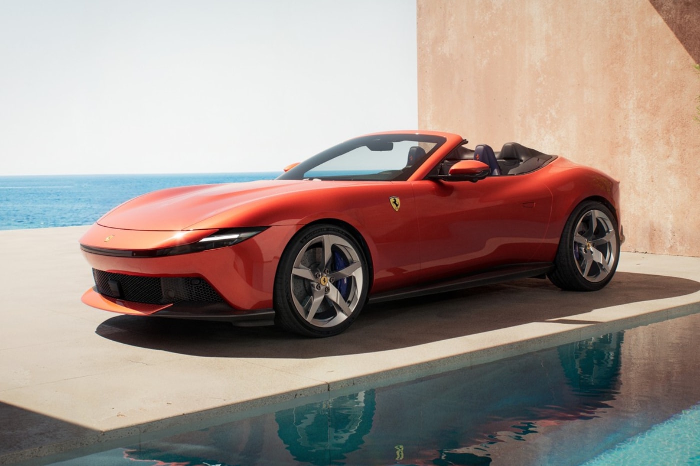 - Amalfi Spider зберігає м'язисту елегантність купе, але з ключовими поліпшеннями для аеродинаміки та структури.