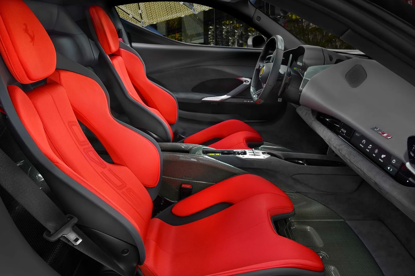Але SC40 – це не лише зовнішність. Під капотом ховається гібридна установка: 3,0-літровий V6 з подвійним турбонаддувом розвиває 654 кінські сили та 740 Нм крутного моменту. Електромотор, інтегрований між двигуном і восьмиступінчастою коробкою F1, додає ще потужності, і сумарна віддача досягає приголомшливих 819 к.с. Це Ferrari, яка вміє бути блискавкою на дорозі, але зберігає тонкий шарм класики.