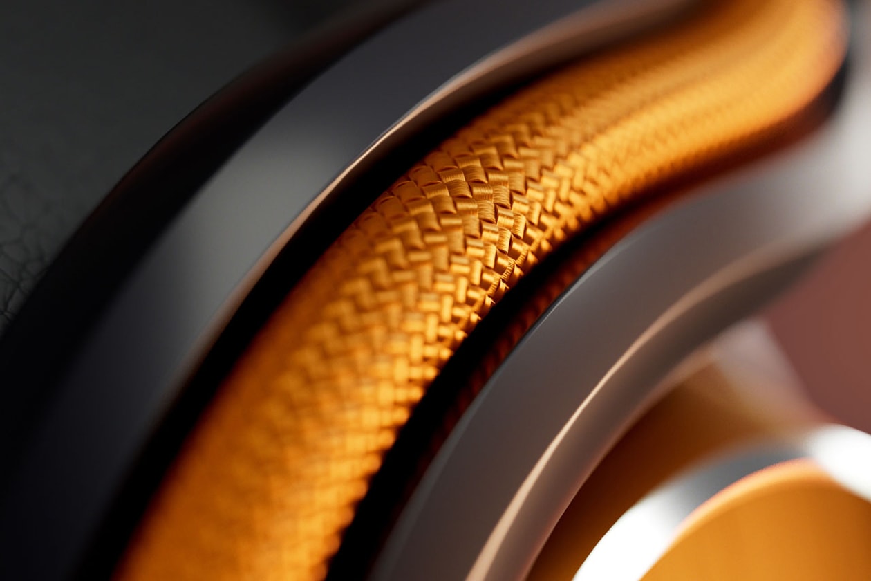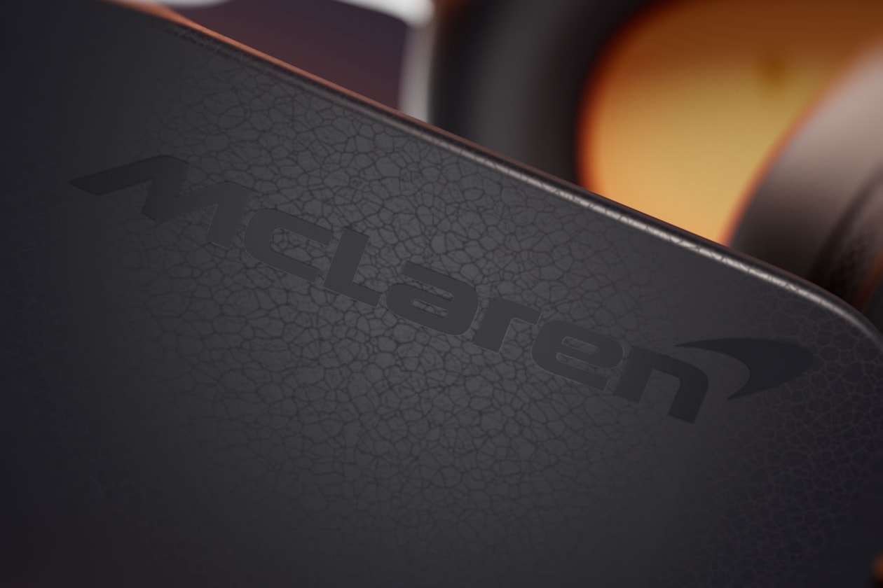 McLaren не міг обійтися без фірмового стилю: навушники пофарбовані в легендарний Papaya з акцентами Anthracite Grey та Speedmark, а еліптичні логотипи сяють алмазним огранюванням. М'яка амбушюра з пам'яті форми та обідок зі шкіри Nappa перетворюють їх на предмет розкоші, який хочеться носити.