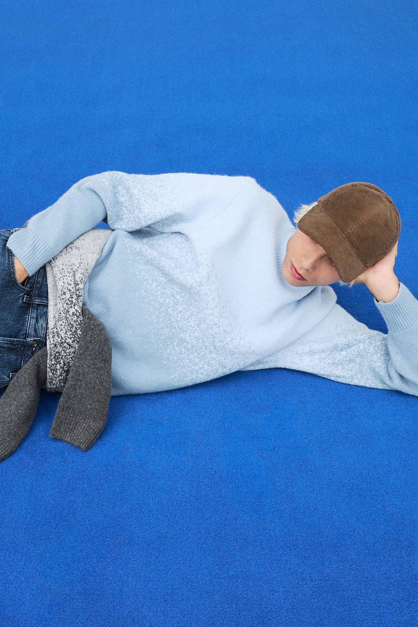 Андерсон знає: щоб вижити британську зиму, потрібно не лише чай та HEATTECH, а й сміливість носити кольори. У центрі уваги — в'язане поло кольору кривавого апельсина, светр із геометрією у стилі херрінгбон та інтарсія із сучасними мотивами.