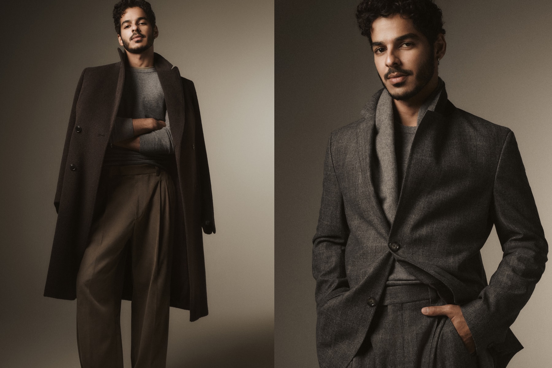 - Кхаттер носить італійське пальто з вовни і New Trouser - нові розслаблені штани з подвійними складками. Легкий натяк на вінтаж, але в максимально актуальному прочитанні.