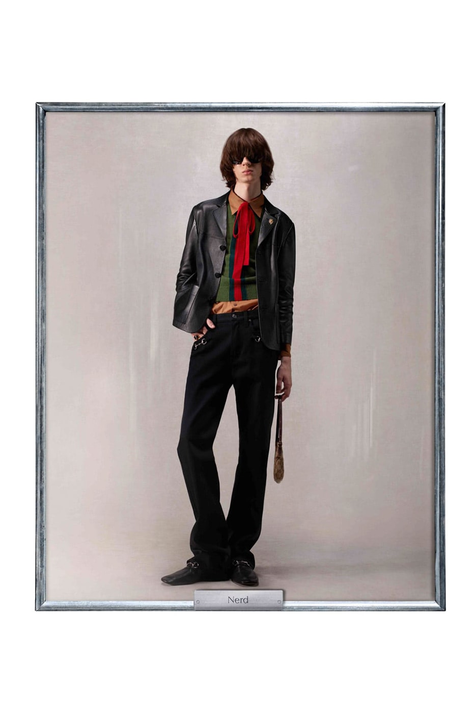- "Nerd" - жилет у ретро-стилі 70-х з червоно-зеленими смугами Gucci, укорочений шкіряний блейзер і широкі штани з культовою фурнітурою.