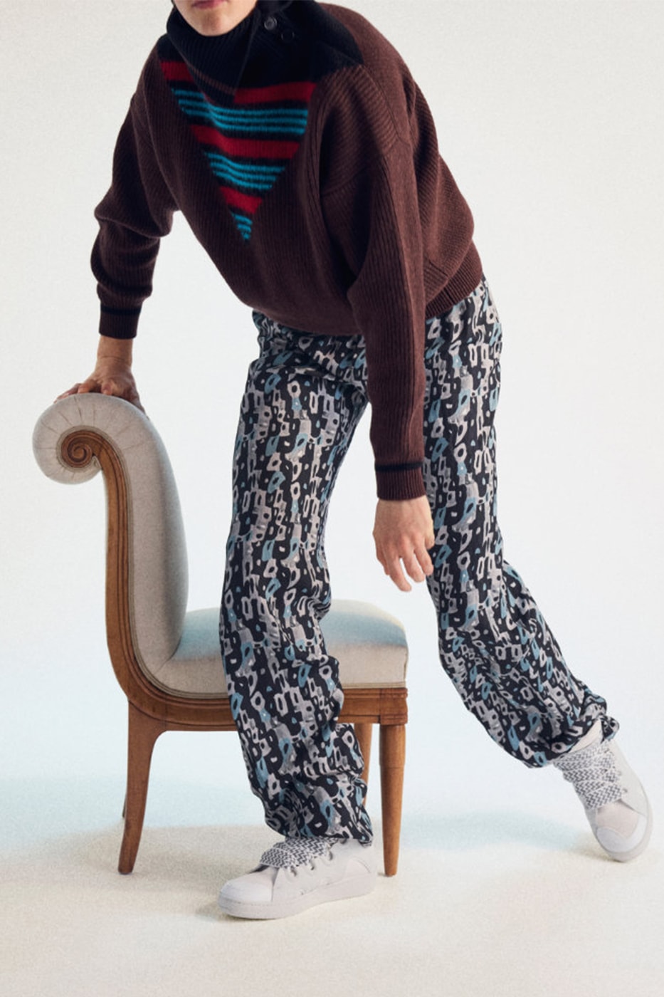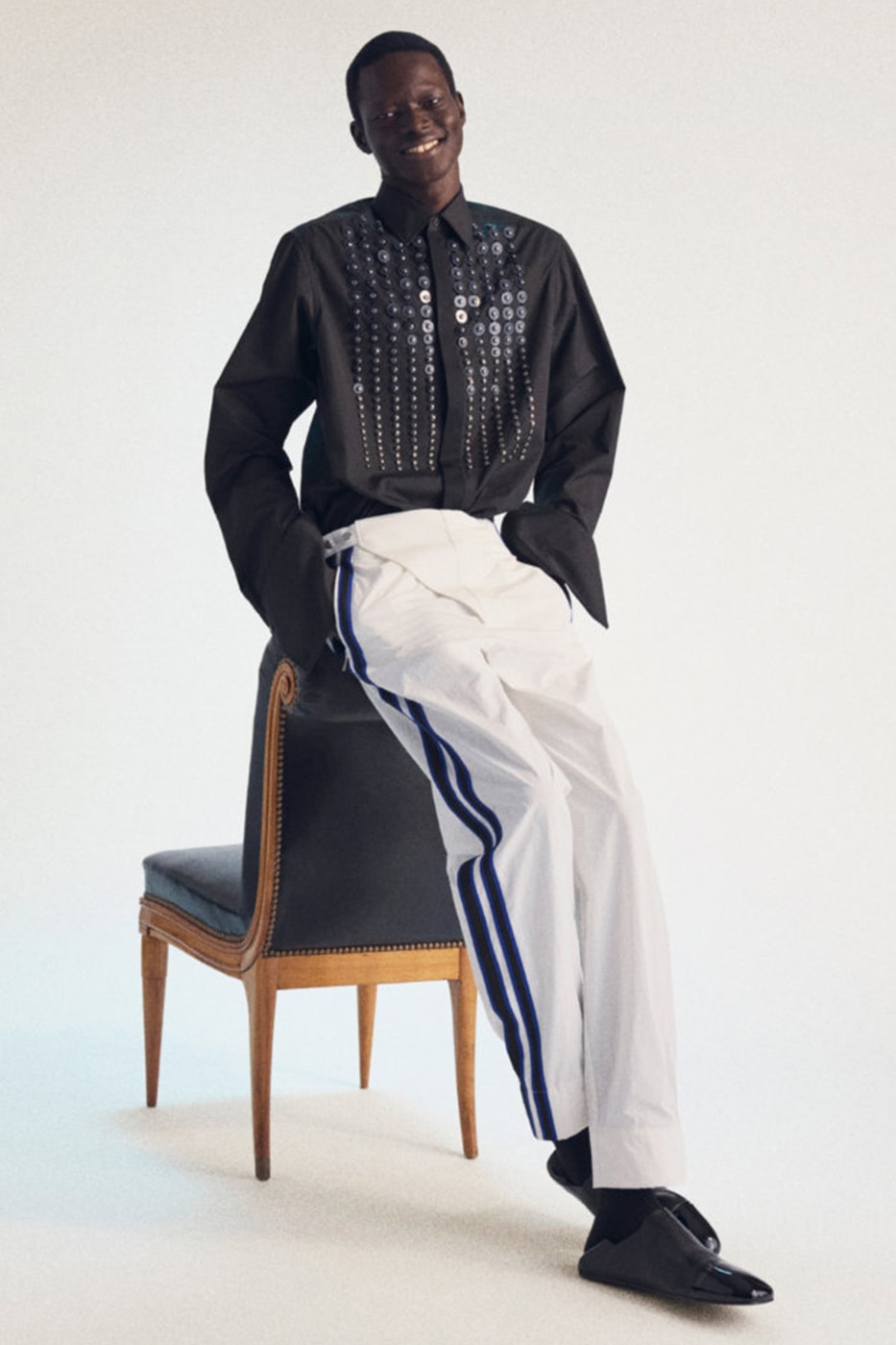 Особливий шарм колекції надають фігурні венеціанські тканини з архівів Lanvin, відтворені сучасними майстрами Bevilacqua для джинсування та робочих жакетів.