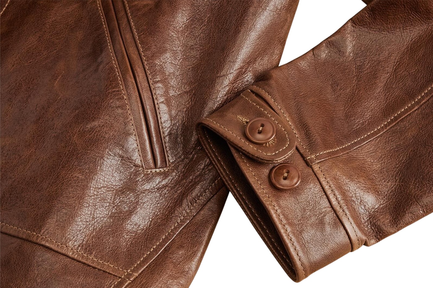Менло Коссак Leather Jacket, вперше одягнена Ейнштейном приблизно в 1935 році, повертається у вигляді точної копії: укорочений квадратний силует, характерний заокруглений комір і манжети, латунні пряжки на бічних застібках все як у оригіналу. Кожна деталь - це маленька машина часу, яка переносить вас в епоху великих відкриттів та справжнього класичного стилю.