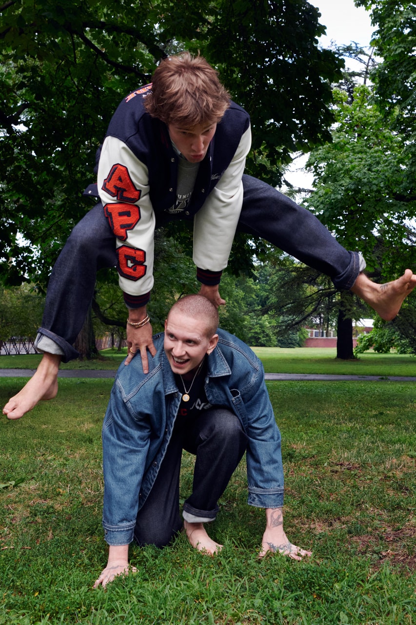 Класичний collegiate look перероблений з увагою до шарів тканин та архівних деталей: вовняні та шкіряні varsity-куртки, сорочки Oxford, регбійні светри та смугасті поло ідеально відображають атмосферу старої школи, а фірмовий денім A.P.C. додає універсальності та повсякденного шику. Для жінок – міні-спідниці та універсальні chore jackets, а для чоловіків – суворі, але комфортні джинси та світшоти.