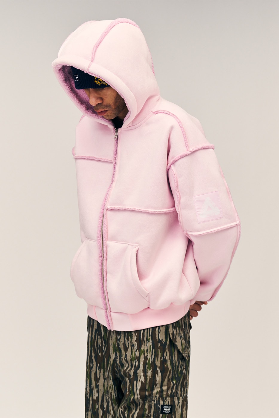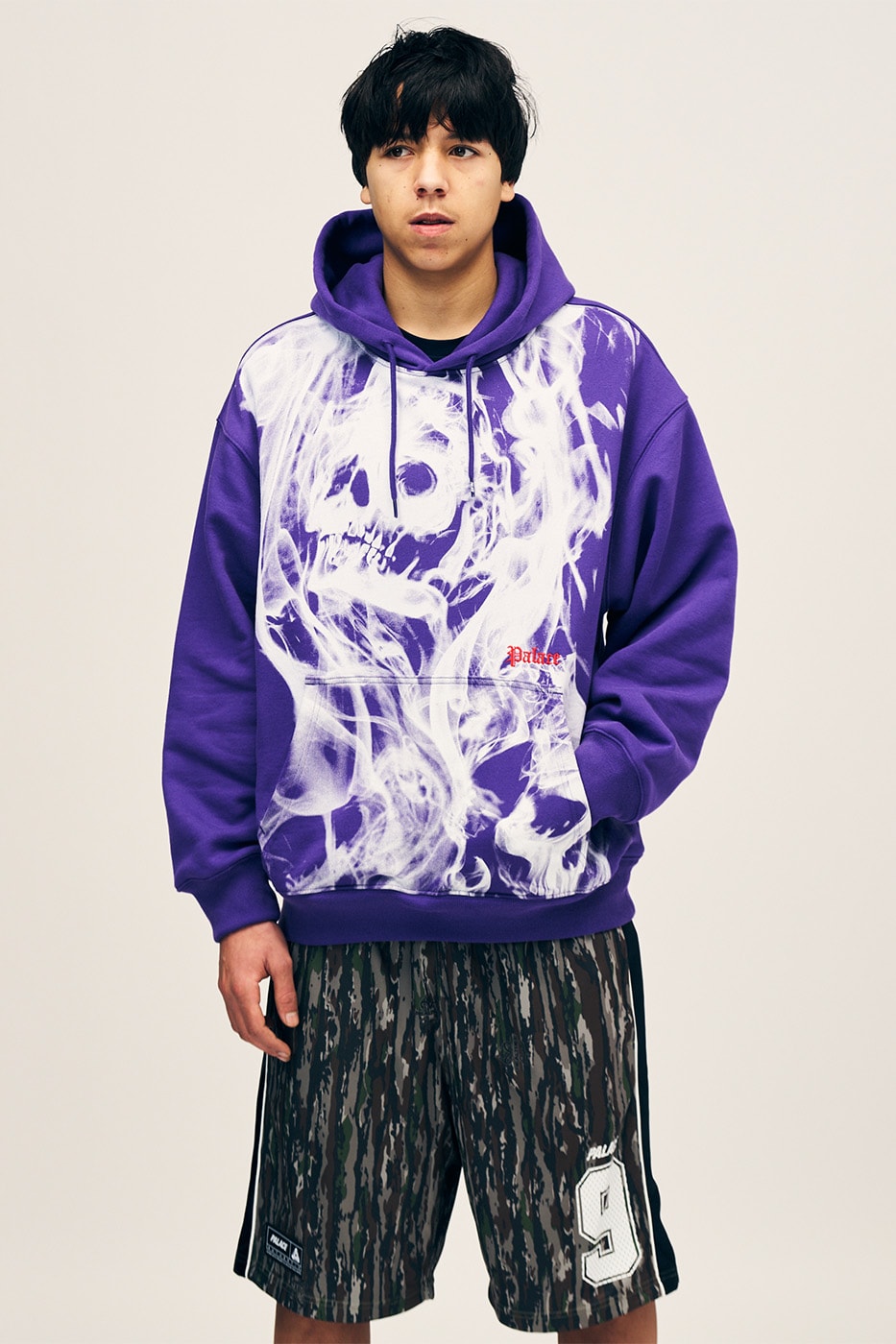 Весна 2026 в Palace - це фіолет, лісовий зелений та кислотні акценти, які роблять навіть звичайний джерсі або поло справжньою візуальною бомбою. Змішання камуфляжу, флористики та пуховиків з вушками створює хаотичну, але продуману естетику, де немає нудьги.