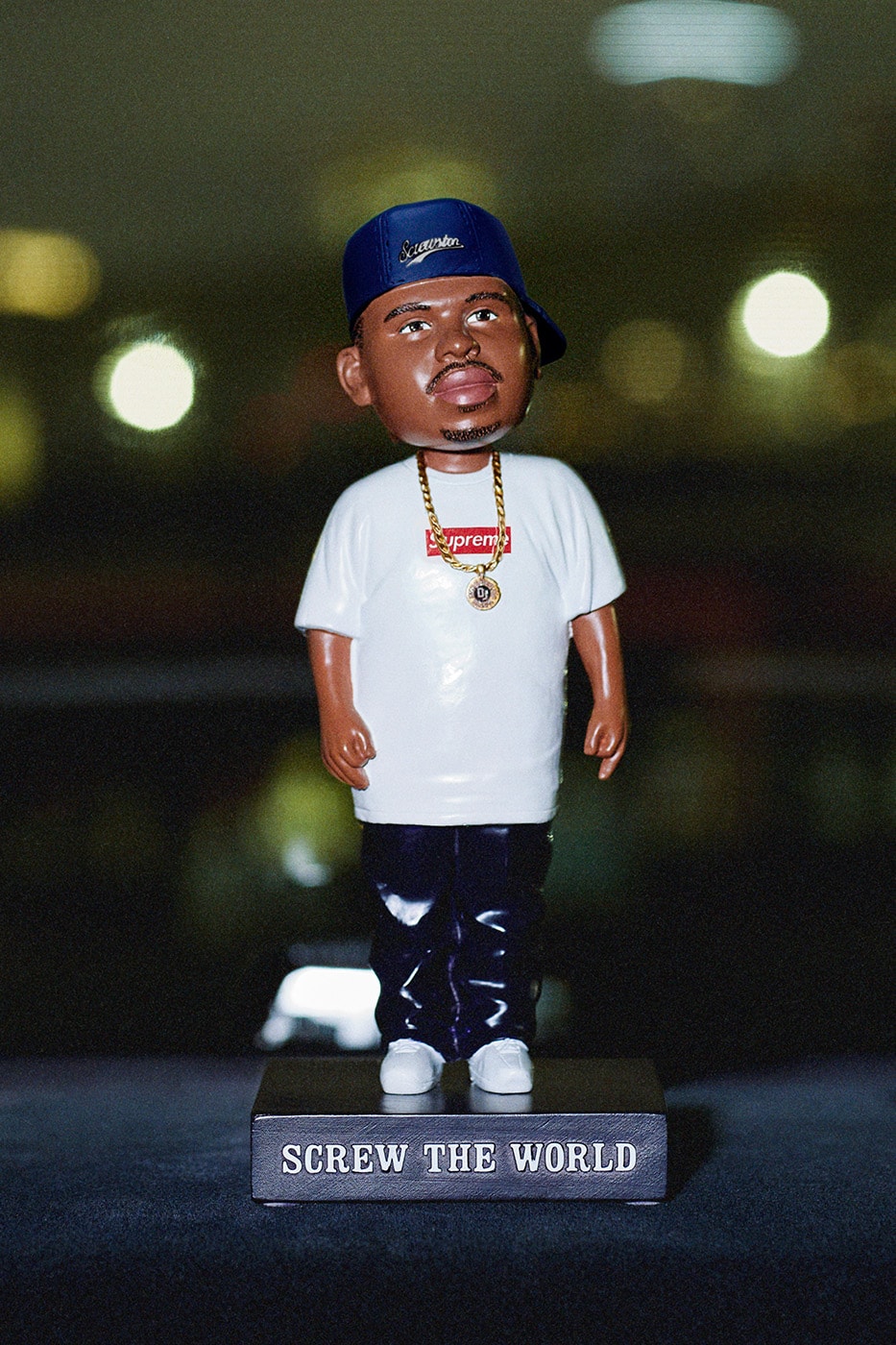 - 5-panel кепки та колекційний Bobblehead Screw у фірмовому екіпіруванні Supreme.