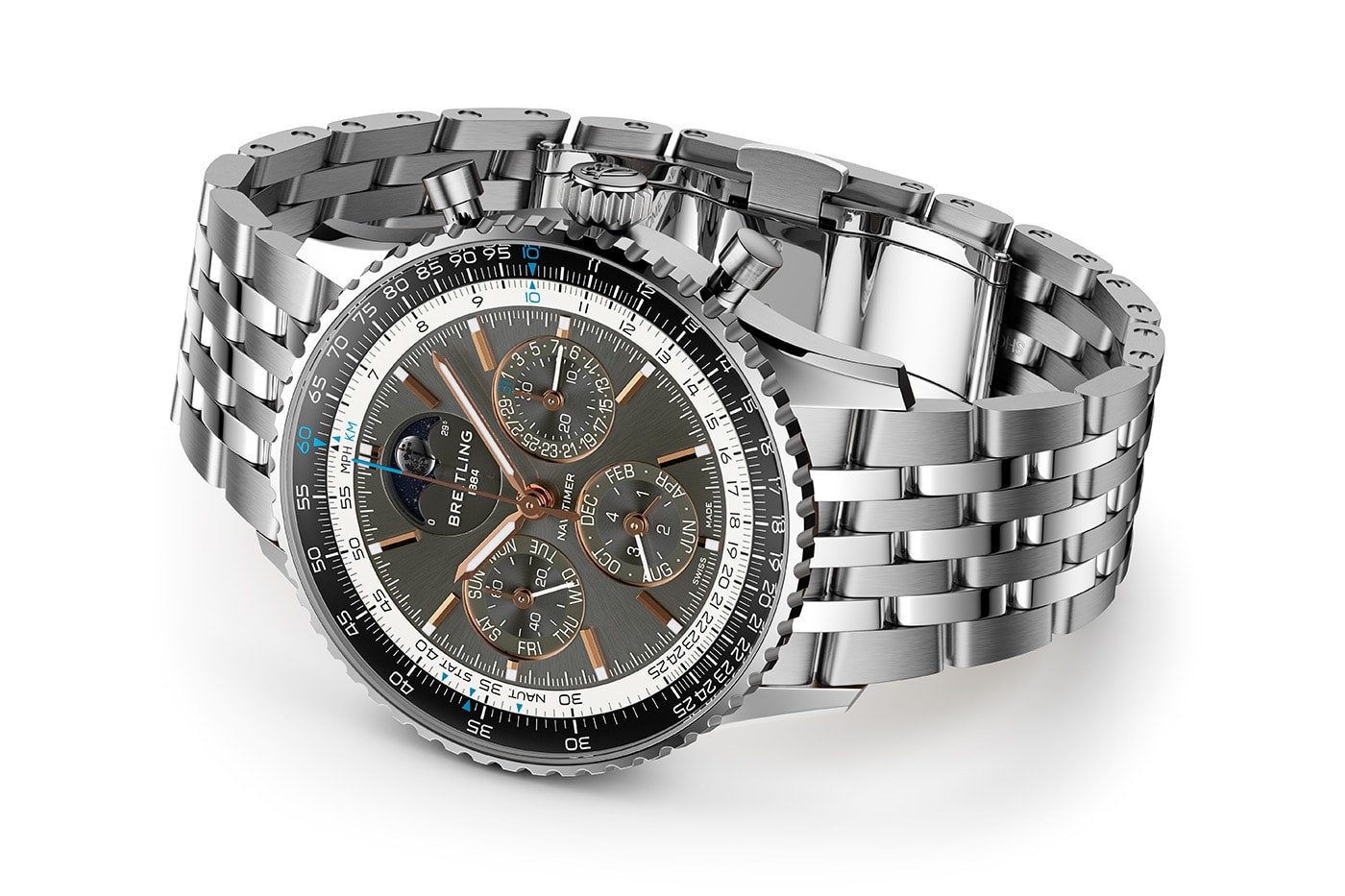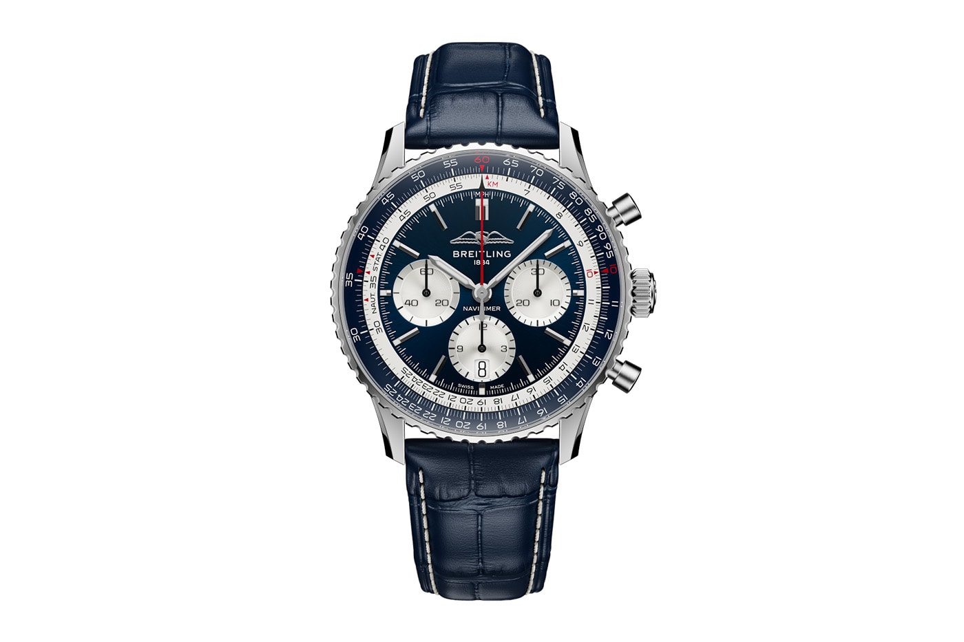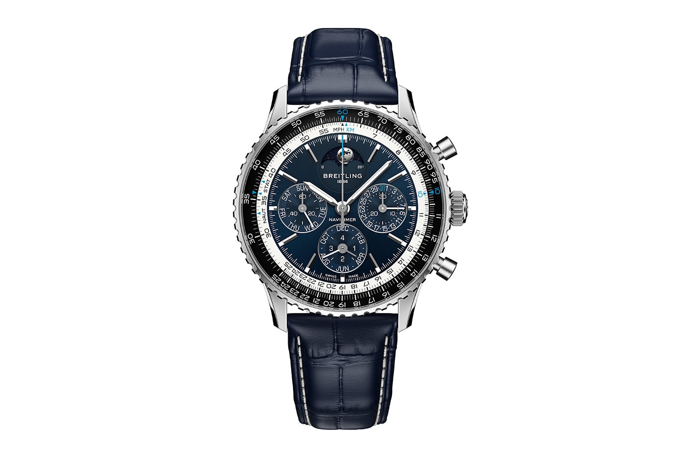 - Стратосферно-синій циферблат, білі контрастні субциферблати та внутрішня лінійка для розрахунків.