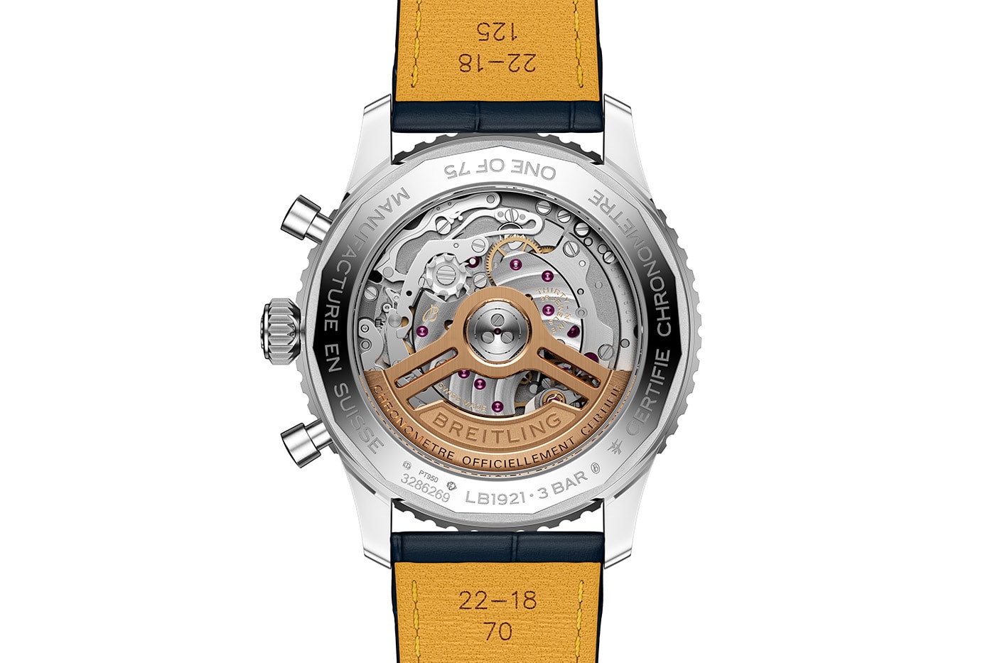 - Наводиться рух COSC-сертифікованим калібром B01.