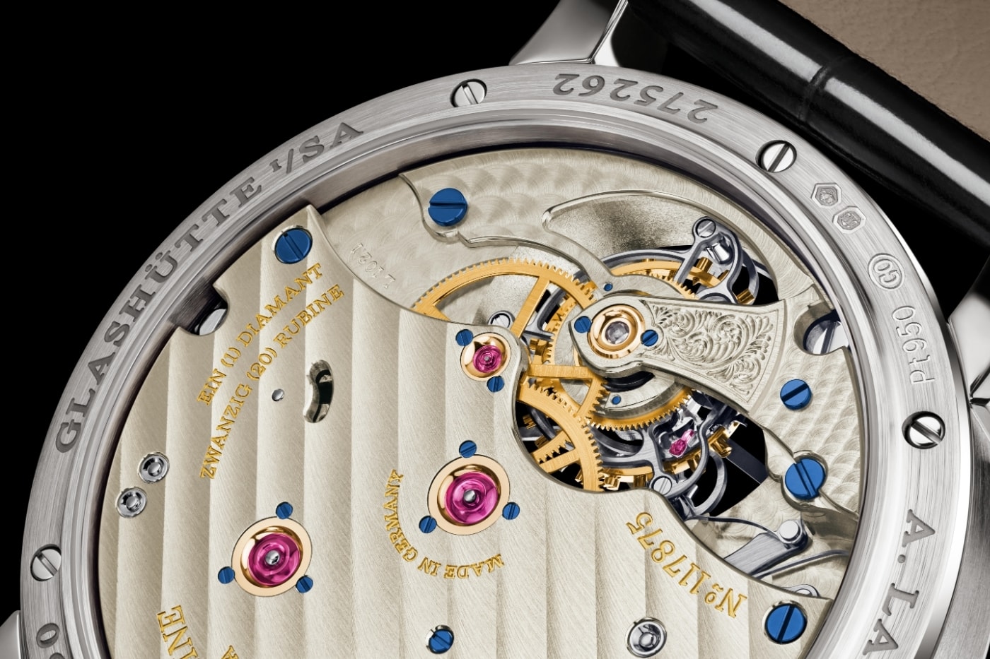 Механізм L102.1 заводиться вручну та працює 72 години. Німецьке срібло, ручне оздоблення мостів, алмазний камінь у золотому чатоні — це все нагадує: тут не про масовість, а про ювелірне мистецтво.
