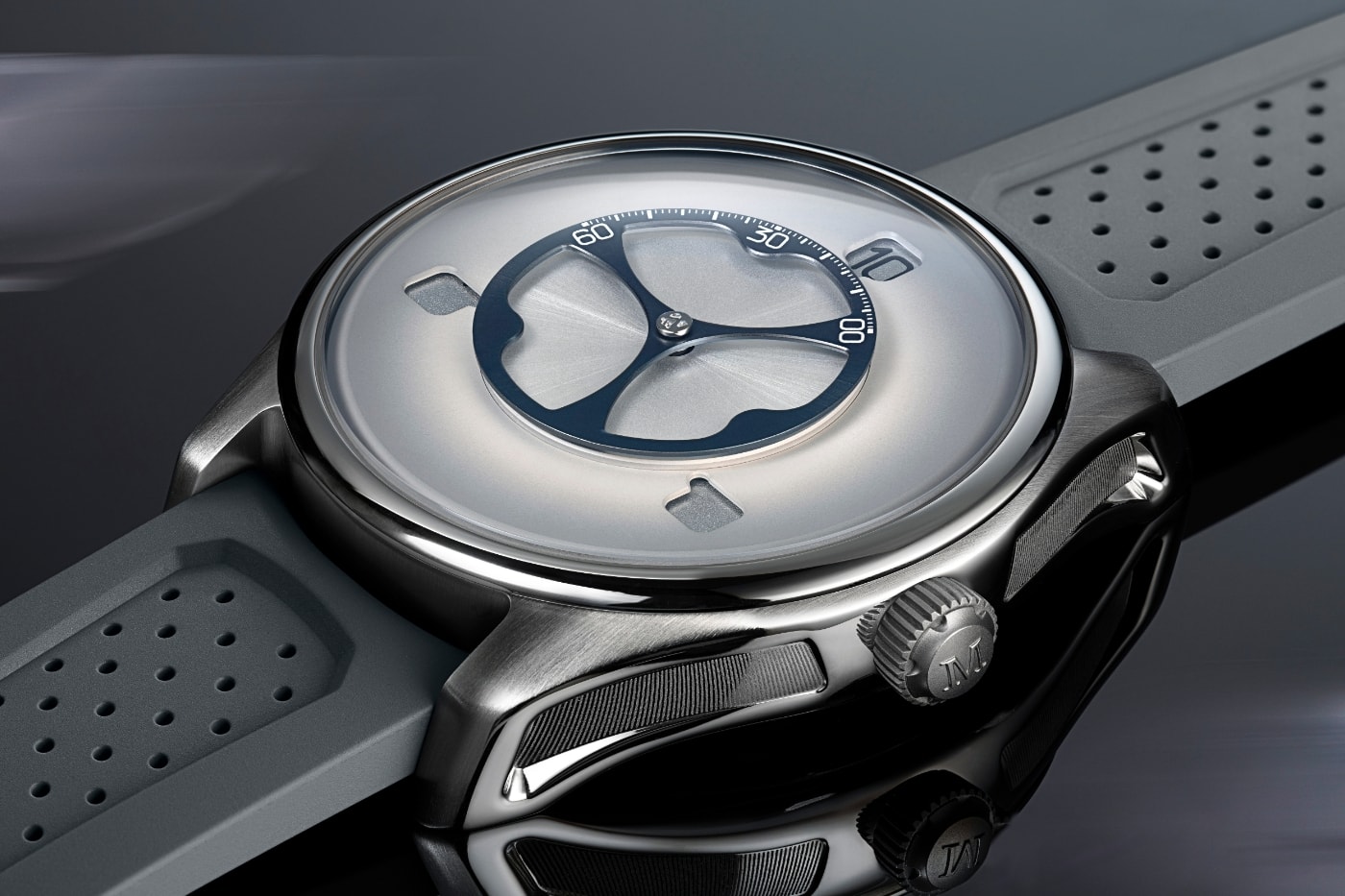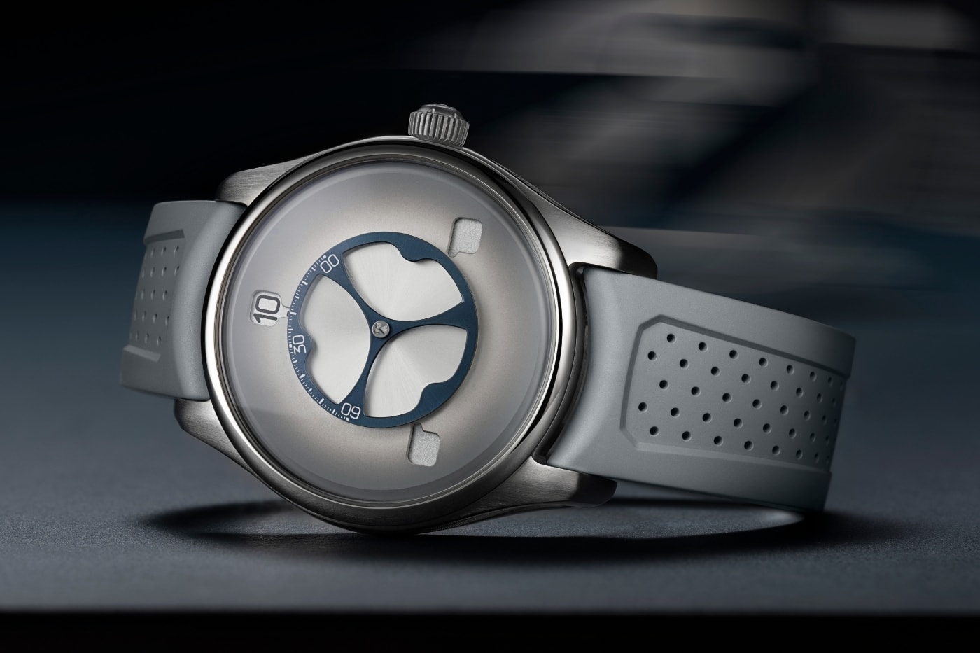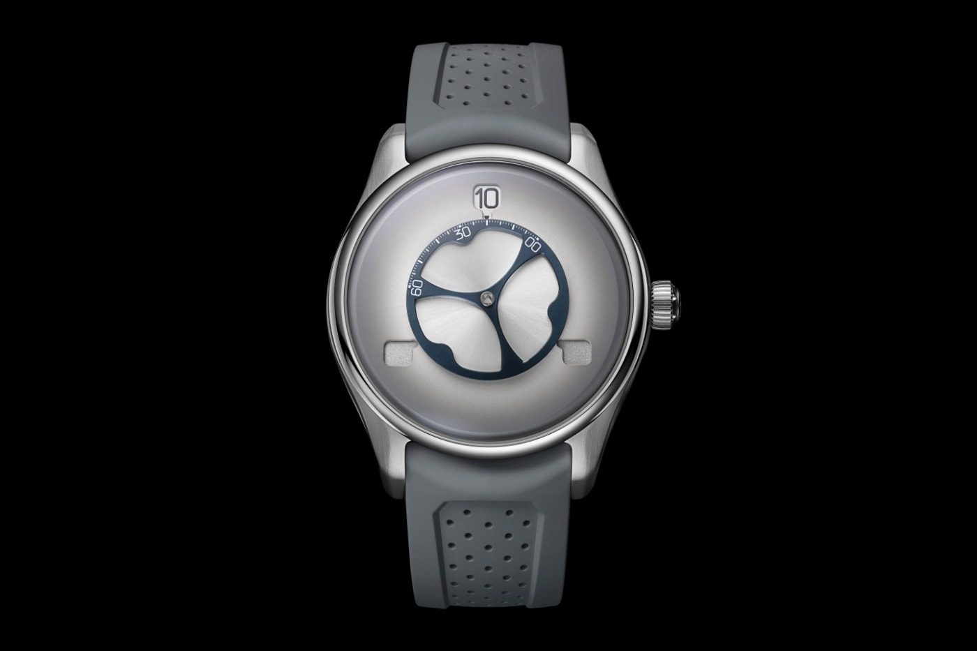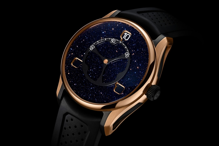 Головна фішка новинки — три диски, що обертаються, які показують годинник, ніби планети на орбіті, а центральний диск відповідає за хвилини. Інноваційна система з миттєвим стрибком години робить читання часу інтуїтивним та чарівним: ви буквально стежите за танцем цифр. Мінімалізм на циферблаті вражає — ні логотипів, ні зайвих поділів, лише чиста графіка та техніка, яка змушує затримуватися погляд.