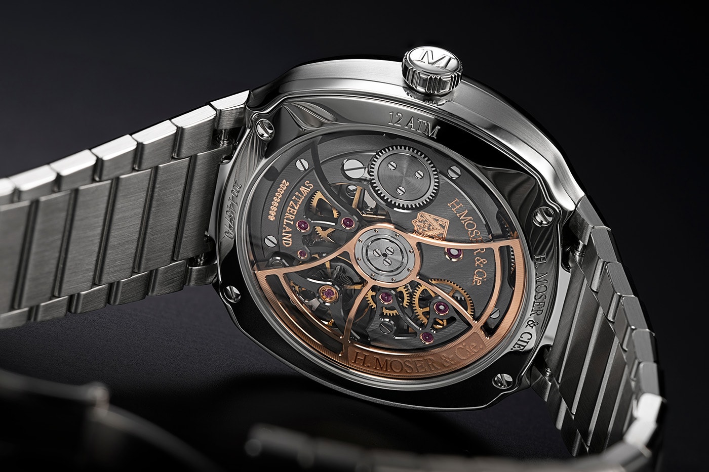Серце моделі – автоматичний калібр HMC 270, вперше в історії Moser з вічною місячною фазою в автоматичному виконанні. Точність вражає: відхилення місячного циклу – лише один день за 1027 років. Резерв ходу складає 72 години, а прихована кнопка на корпусі дозволяє елегантно коригувати відображення фаз Місяця.
