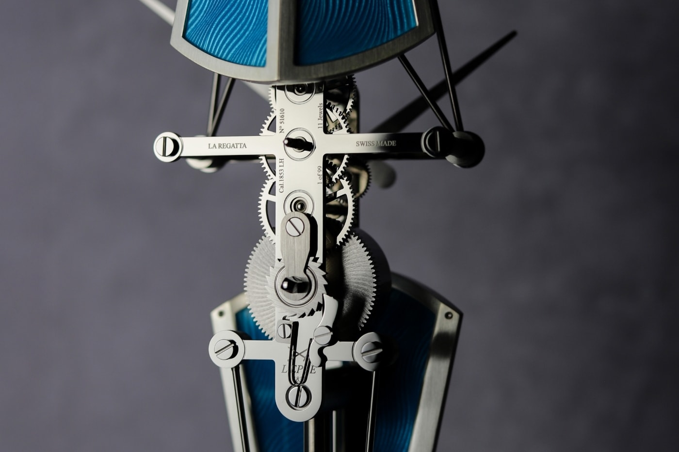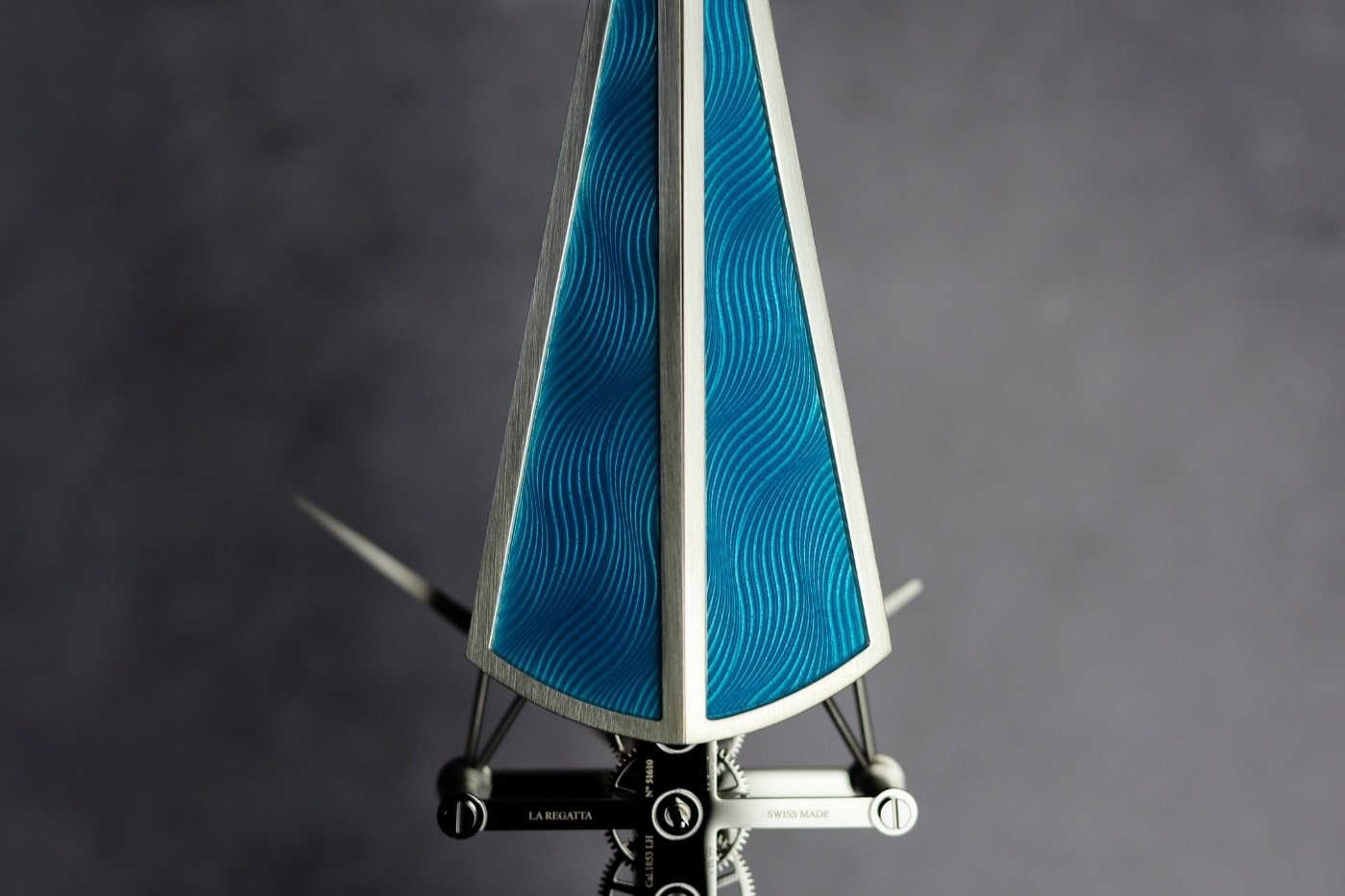 La Regatta натхненна тонкою формою гоночного скфа - човни для веслування. Всі шестерні та механізми вибудовані вздовж однієї вертикальної осі, повторюючи плавний рух весляра на воді. Такий підхід не лише візуально вражає, а й дозволяє досягти восьмиденного запасу ходу, поєднуючи технічну міць із художньою грацією.