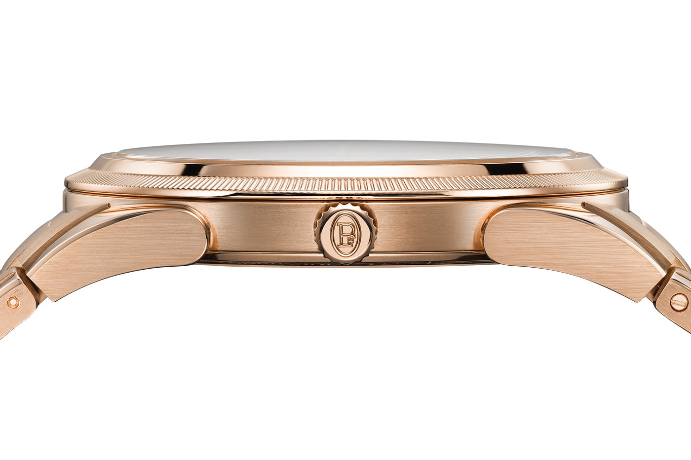 - Безель з тонкою накаткою - платиновий для сталевої версії, золотий для рожевого золота.