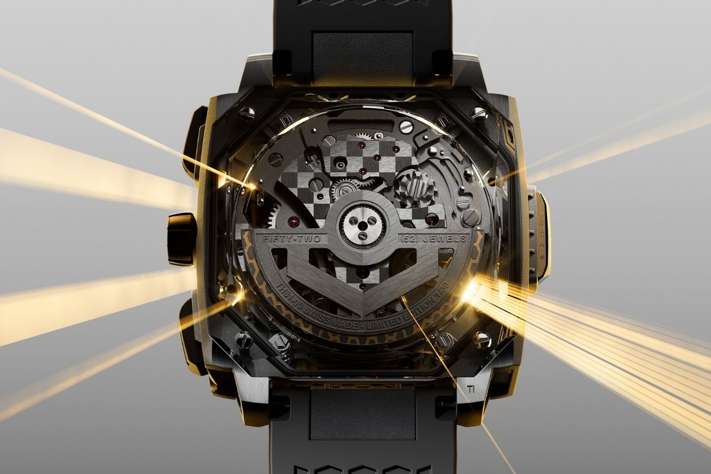 Серце новинки – ультралегкий корпус із титану Grade-5, створений за допомогою Selective Laser Melting (SLM). Цей передовий метод адитивного виробництва дозволив отримати геометрії, які раніше були неможливі: корпус наче вирізаний повітрям, з лініями, що повторюють аеродинаміку гіперкарів. 41-міліметровий дизайн з'єднує різкі грані та м'язисті лінії з двошаровою «стільниковою» сіткою, натхненною кришками двигунів суперкарів. Контрастні матеріали — титанові грати та лазерно вирізані елементи з 2N жовтого золота — надають годинникам відчуття технологічності та преміальності одночасно.