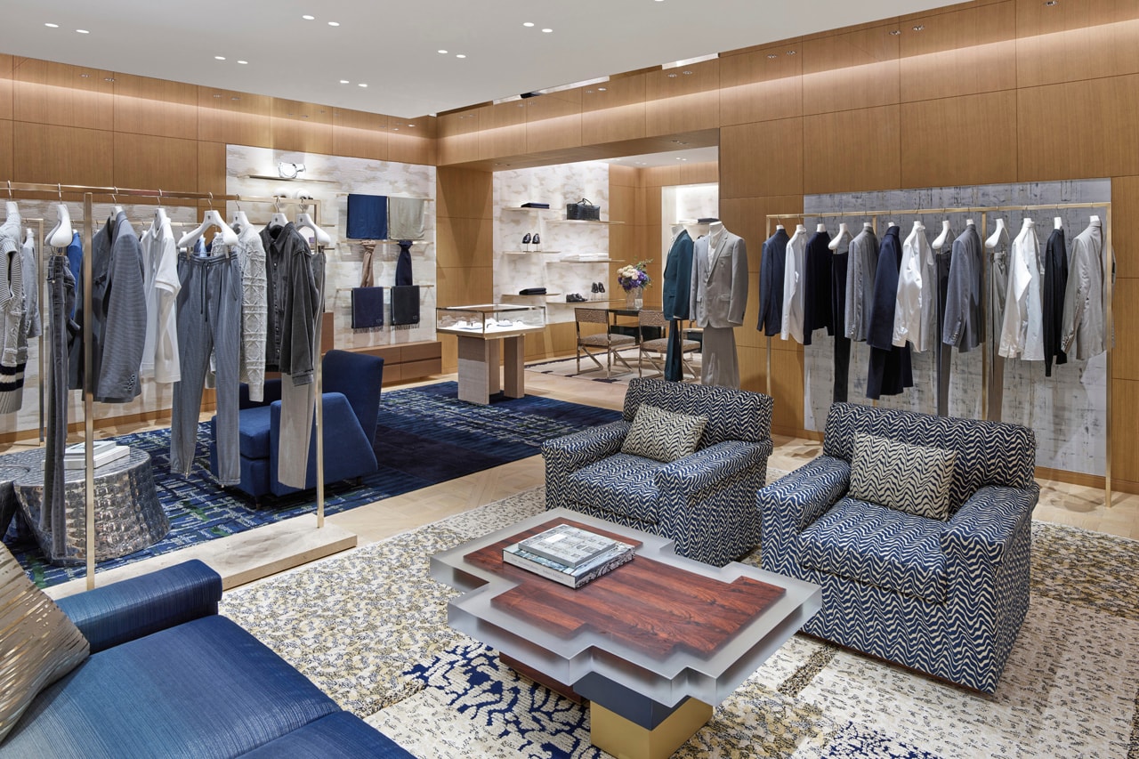 Білий фасад із панорамними вікнами та зеленими садами від ландшафтного майстра Петера Вірца наче натякає: усередині буде красиво. І справді — чоловічий та жіночий одяг prêt-à-porter, шкіряні аксесуари, ювелірка, аромати… Кожна вітрина — як кадр із глянсового журналу.