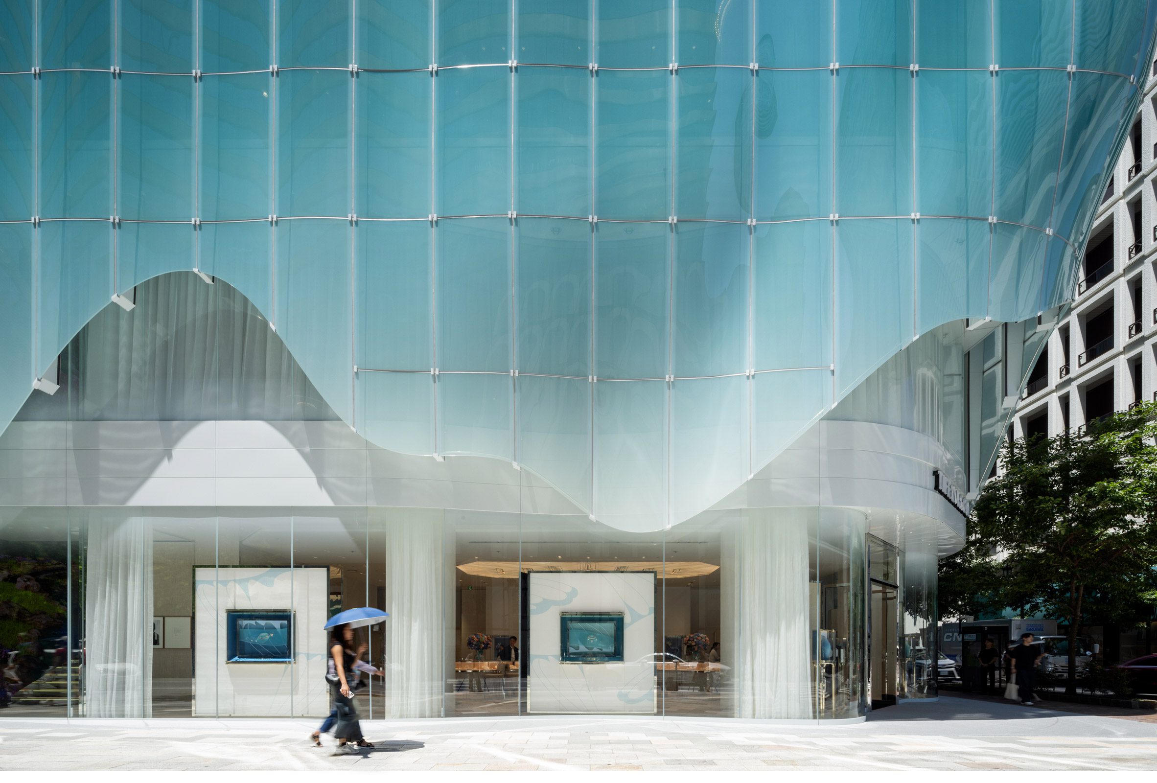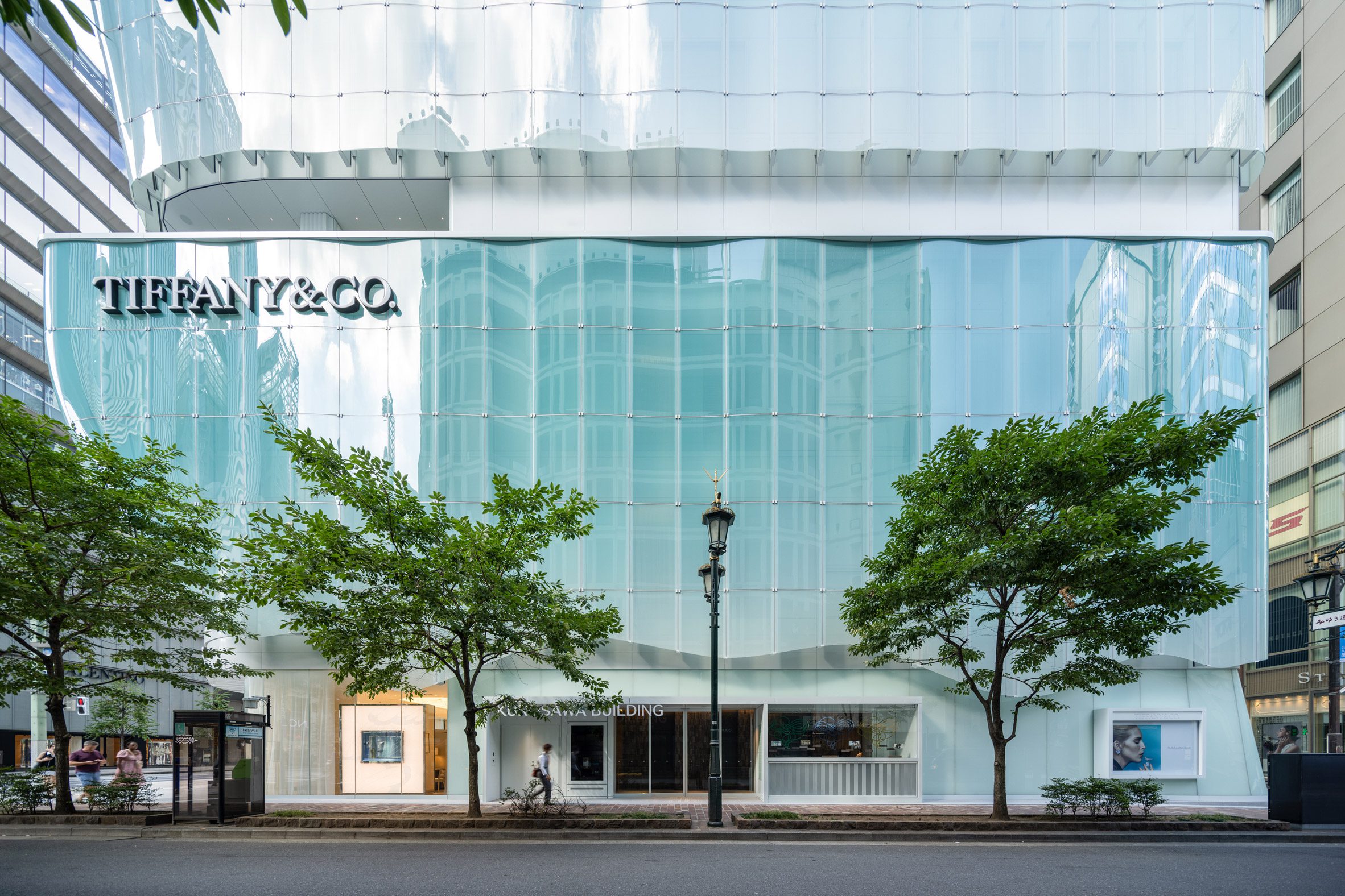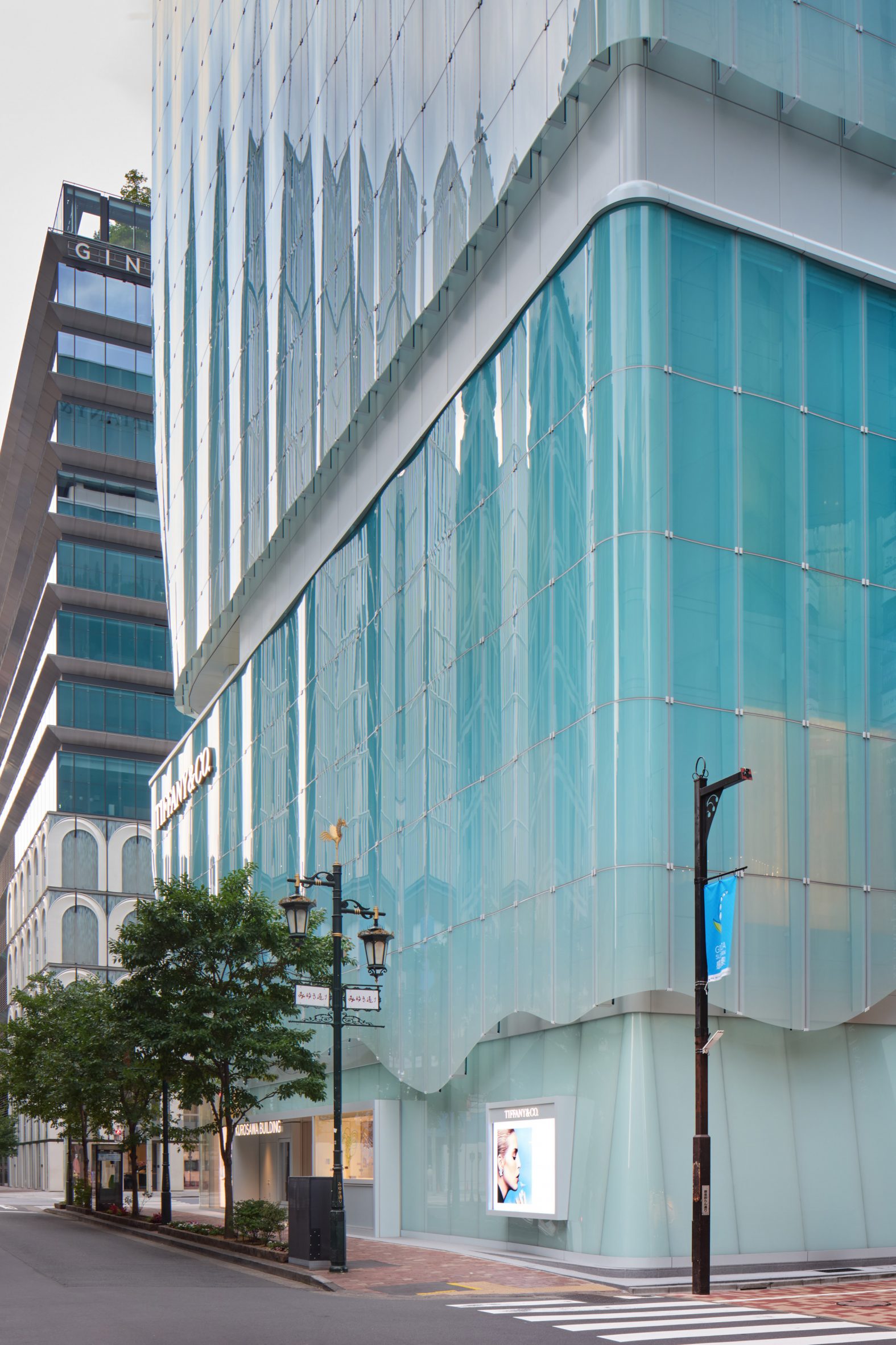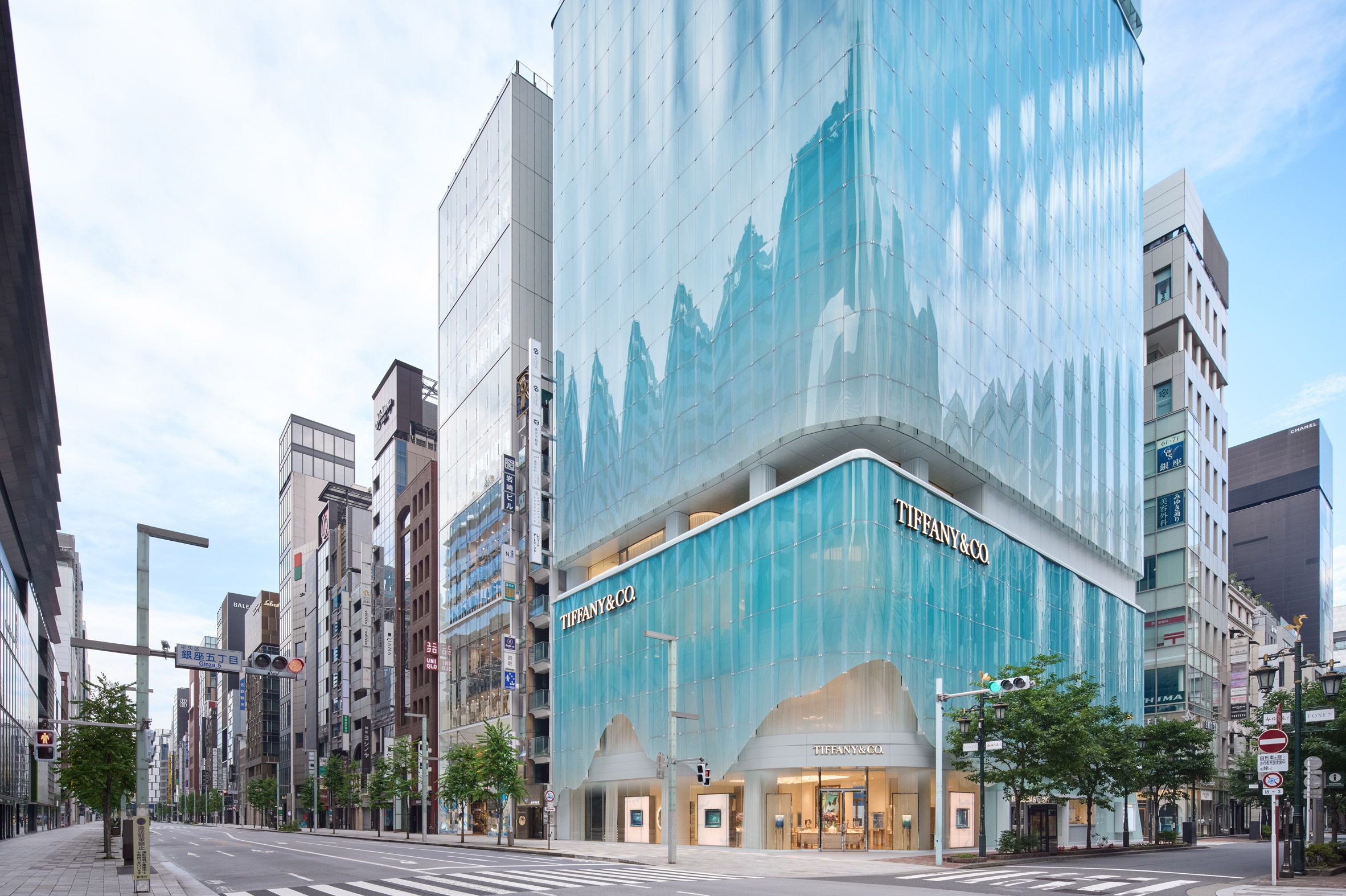 У Токіо з'явився справжній архітектурний звір. Японське бюро Jun Aoki & Associates повністю перетворило фасад флагманського магазину Tiffany & Co у кварталі Гінза, створивши потік із вигнутого скла, пофарбованого у фірмовий Tiffany Blue.