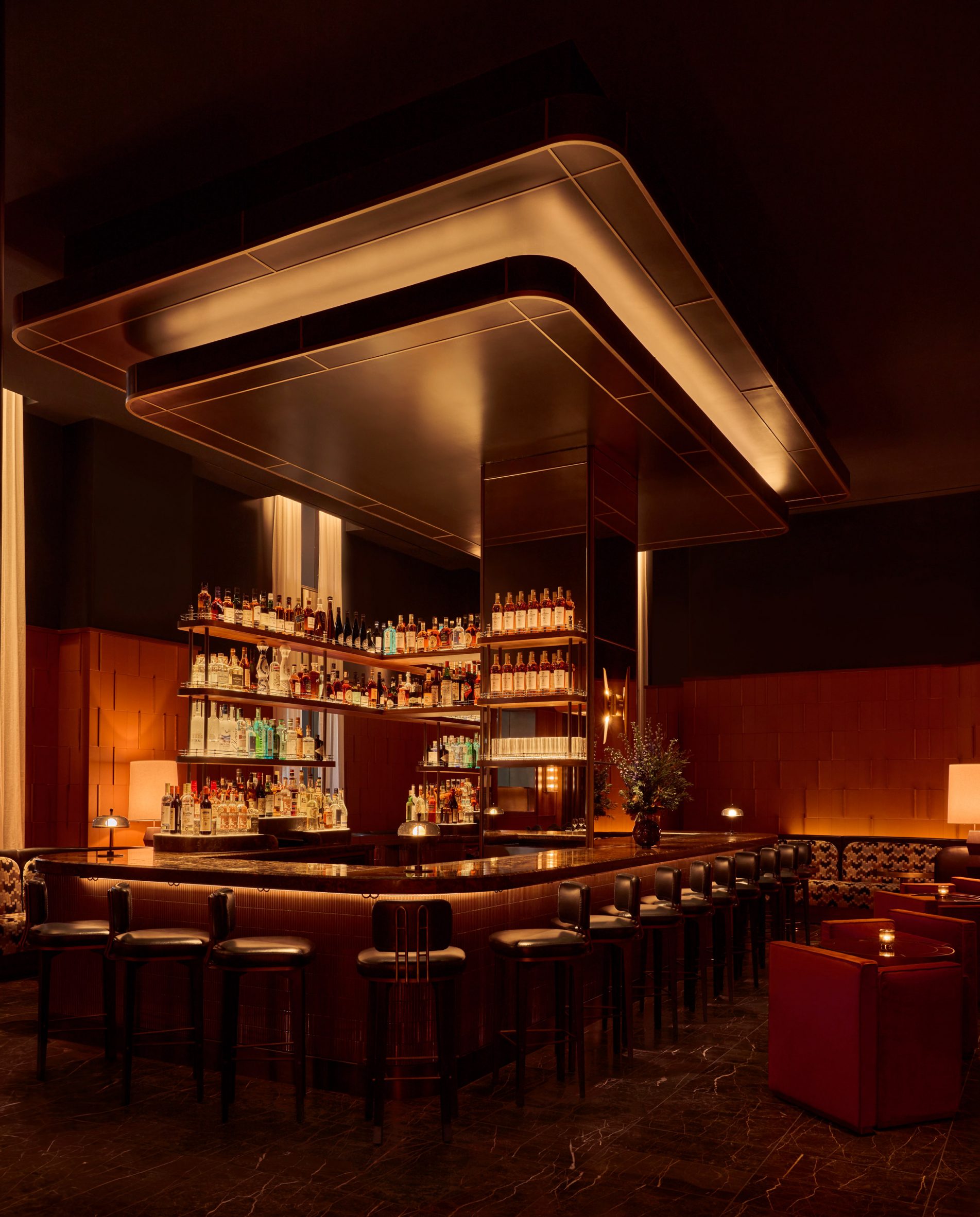 Перше, що впадає у вічі, коли ви входите, — насичені червоні стіни, ніби просочені енергією міста, яке ніколи не спить. Вони створюють відчуття сили та впевненості, а суворі геометричні лінії в інтер'єрі надають простору архітектурної мужності. Тут немає випадкових деталей: кожна форма, кожна текстура продумані так, щоб говорити про класику арт-деко, але із сучасним нью-йоркським акцентом.